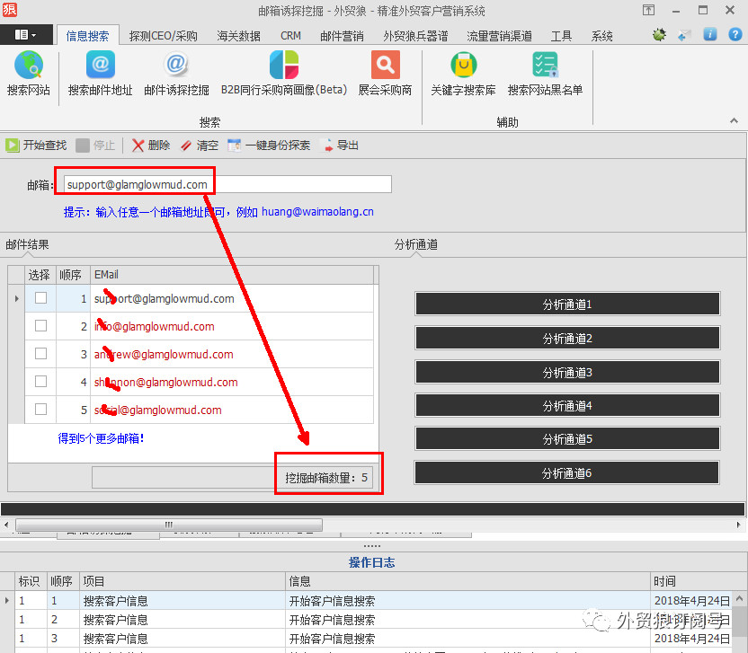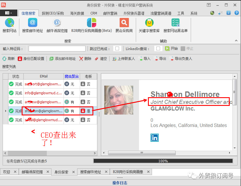 客戶希望以這個郵箱(c.hamel@glamglow.com )為線索去分析這家公司的采購或者老板的郵箱,而通過外貿(mào)狼,只能查的出來2個郵箱,而且無法分析身份信息。