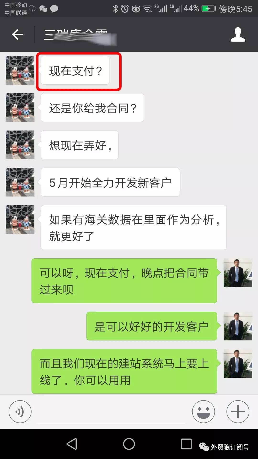 外貿(mào)狼是一款工具,的的確確非常高效獲取精準(zhǔn)線索。要發(fā)揮出他所有的價值,得結(jié)合外貿(mào)人的專業(yè)度和外貿(mào)知識。就如這個案例,如果連這套思路都沒有,很有可能就丟失了這個客戶,加油!感謝唐總信任,感謝直接網(wǎng)絡(luò)轉(zhuǎn)賬合作,現(xiàn)在合作外貿(mào)狼,總20個國家的建站系統(tǒng)哦!加油!