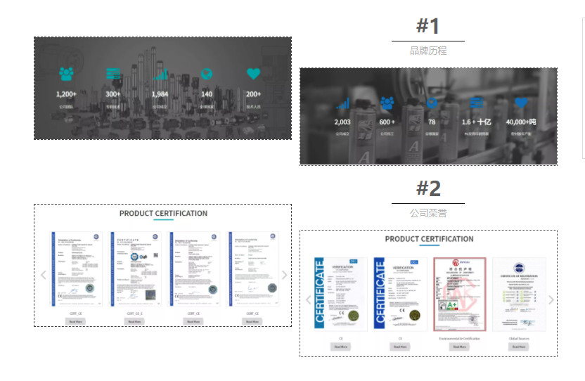 展示出企業(yè)的成立時(shí)間、發(fā)展歷程、文化理念、榮獲的專利及榮譽(yù)墻、產(chǎn)品與服務(wù)等等,通過對(duì)外展示企業(yè)專業(yè)度與客戶建立信任感,更能吸引住潛在客戶