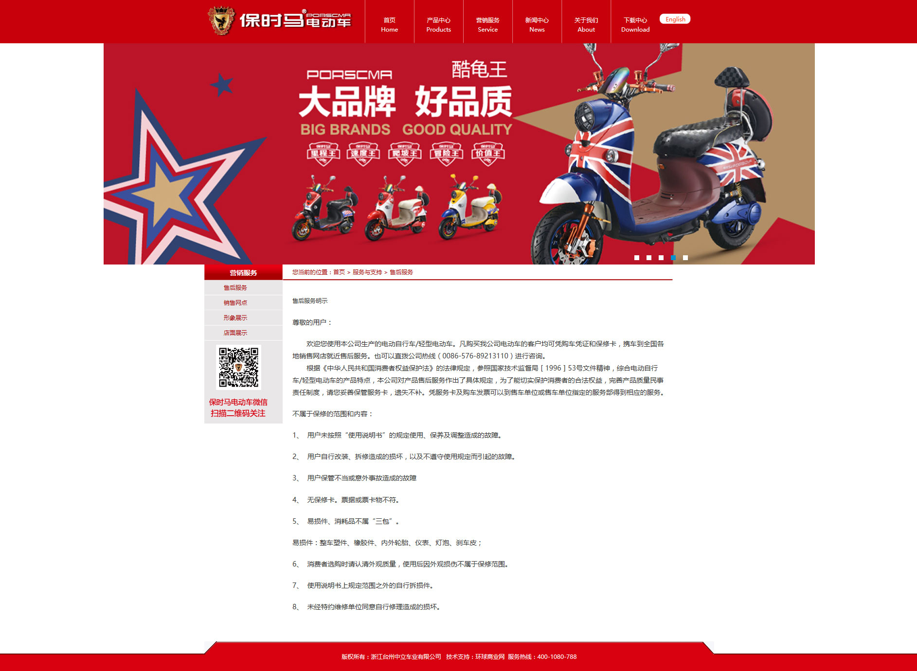 公司旗下保時馬、永奔兩大品牌,已向市場投放數(shù)百款樣式新穎,性能優(yōu)良的電動車。公司以多元化營銷模式在全國建立了較為完善的銷售服務(wù)體系,在各個省市設(shè)有代理商以及銷售網(wǎng)點,按照售后服務(wù)的要求,在各個省市設(shè)立了三包配件庫,駐外業(yè)務(wù)員、三包服務(wù)人員150余人。系列產(chǎn)品暢銷全國并出口國外。