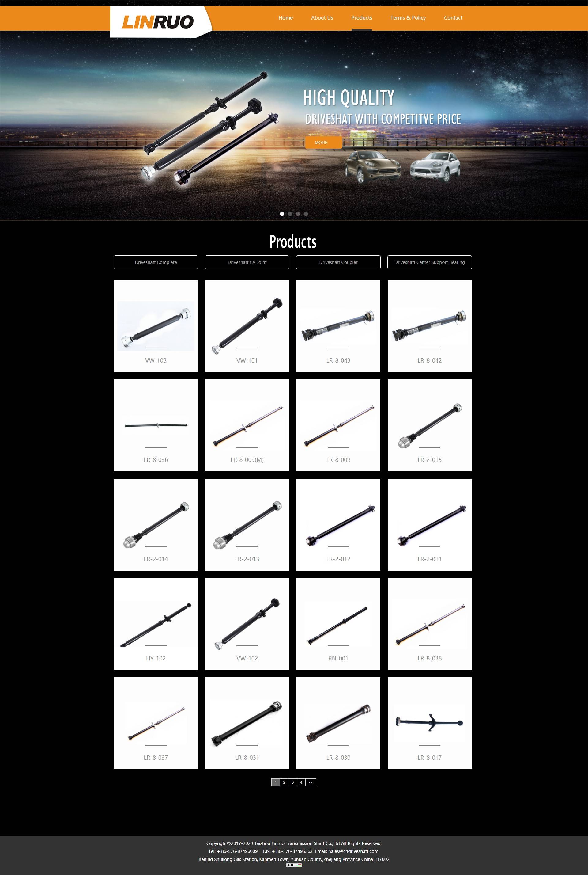 Taizhou Linruo Transmission Shaft specialized in developing, manufacturing and marketing automobile driveshaft (Propeller Shaft, Prop shaft). It was established in 2012 and located in Yuhuan City, Zhejiang Province. Linruo focus on manufacturing complete driveshaft and driveshaft parts (CV Joint, Coupler and Center Support Bearing) for many of the popular rear wheel drive cars and light trucks on the road today. With the great effort of 30 honest, loyal and skilled workers, Linruo Company now have annual production capacity 20000pcs driveshaft.